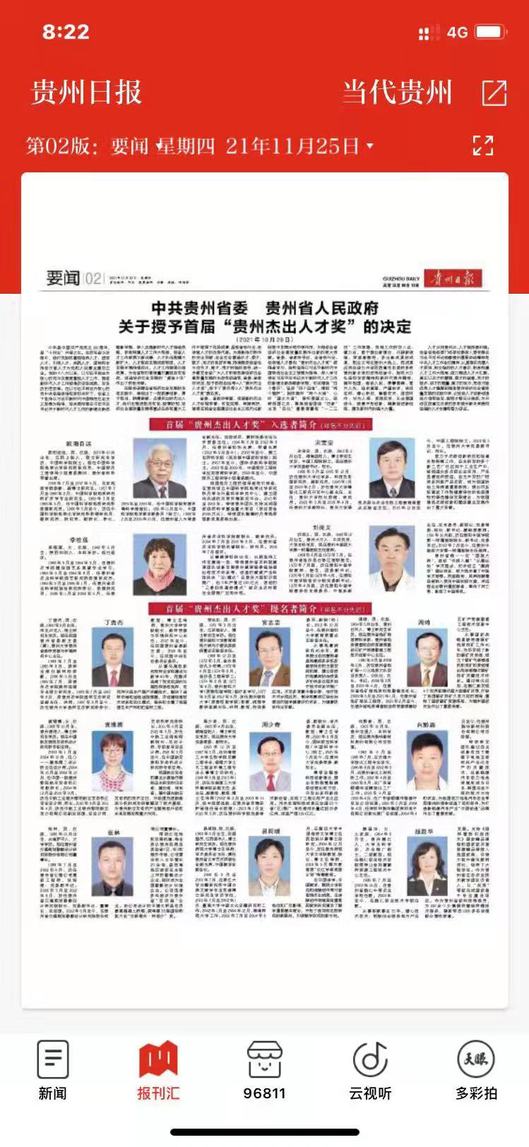 首届“贵州杰出人才奖”入选者简介(排名不分先后)