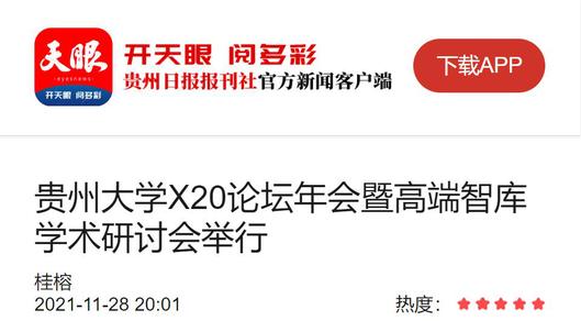 11月28日,贵州大学X20(交叉学科创新团队)论坛2021年年会暨高端智库学术研讨会在织金县举行。