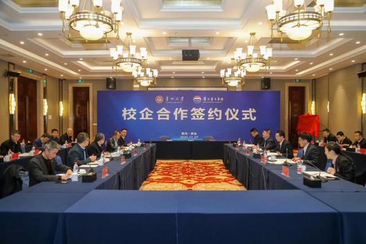 11月27日,茅台集团与贵州大学在茅台国际大酒店签署战略合作框架协议,双方将共建实习实训基地,开展人才交流培养和科研项目合作,积极探索资源共享、优势互补、协同创新、发展共赢的合作模式,推动双方实现高质量发展,共同为地方经济社会发展作出更大贡献。
