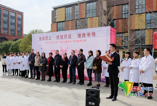 12月1日中午,贵州大学2021年“世界艾滋病日”宣传教育活动于雅文楼广场举行。学校党委和相关职能部门负责人、各学院师生代表共计3000余人参加。