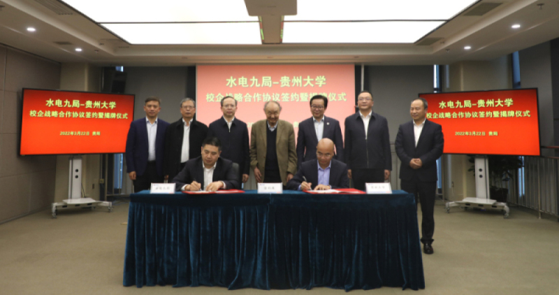 3月22日下午,中国水利水电第九工程局有限公司—贵州大学校企战略合作签约暨工程技术研究中心揭牌仪式在水电九局国际企业大厦举行。水电九局党委书记、董事长徐鹏程,党委副书记、董事、总经理周正荣,贵州大学党委书记李建军,中国工程院院士、空间结构研究中心主任马克俭,副校长张大林、吴攀出席会议,党委办公室、校长办公室、研究生院、科学技术研究院、对外合作处、资源与环境工程学院、土木工程学院、空间结构研究中心等单位和学院负责人参加会议。