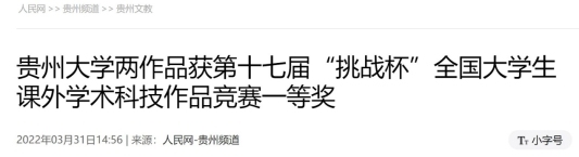 贵州大学精细化工中心团队在决赛现场。贵州大学供图据了解,本届赛事由共青团中央、中国科协、教育部、中国社会科学院、全国学联、四川省人民政府共同主办,四川大学承办,吸引来自全国2000余所高校创客青年的踊跃参与。“挑战杯”竞赛始终坚持“崇尚科学、追求真知、勤奋学习、锐意创新、迎接挑战”的宗旨,被誉为当代大学生科技创新的“奥林匹克”盛会,是国内大学生最关注最热门的全国性竞赛,也是全国最具代表性、权威性、示范性、导向性的大学生竞赛。原文链接:http://gz.people.com.cn/n2/2022/0331/c358160-35202036.html