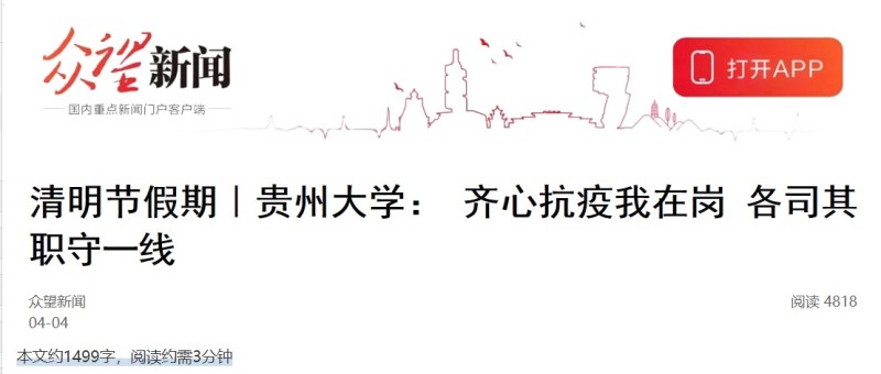 清明小长假期间,贵州大学不折不扣贯彻落实疫情防控及安全稳定工作的各项要求,加强人文关怀和服务保障具体措施。来,让我们走进贵州大学疫情防控前线……
