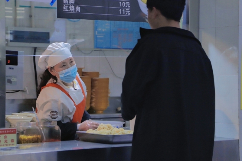 “清明节第一天,食堂的人流量较平时有明显增加,东校区双馨园食堂集中人力物力,保障学生就餐。”双馨园食堂经理葛友海说道:“双馨园所有工作人员,不放假,不排休,食堂菜品售价不增,菜量不减,一切工作正常进行,全力保障学生的正常饮食。”