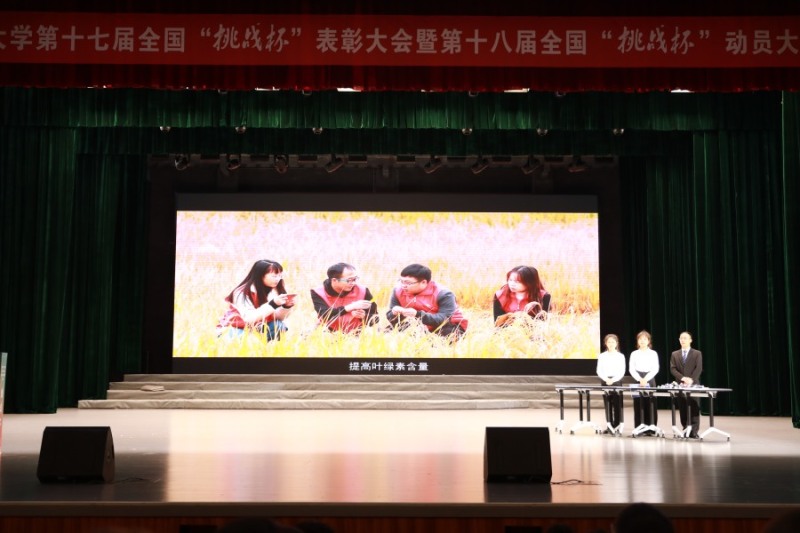 大会表彰了我校在第十七届全国“挑战杯”比赛中获奖的优秀团队。精细化工研究开发中心《新型植物免疫诱抗剂“氟苄硫缩诱醚”的开发及应用》、建筑与城市规划学院《“城市毒瘤”还是“梦想港湾”——探究市中心城中村房屋空置现象原因及改善策略》项目团队分别上台进行路演。建筑与城市规划学院项目团队指导教师余压芳和精细化工研究开发中心参赛代表郭声鑫分别作参赛经验分享。会上播放了“挑战杯”回顾视频、院士寄语及第十八届“挑战杯”贵州大学欢迎视频。