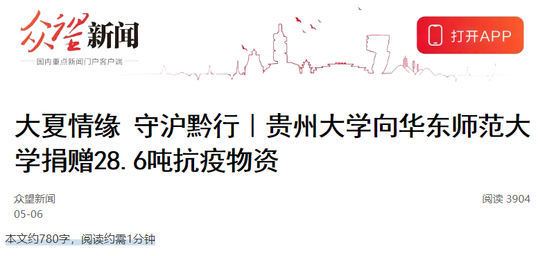 “我宣布,大夏情缘、守沪黔行、同心战‘疫’,贵州大学捐赠华东师范大学抗疫物资,发车!”