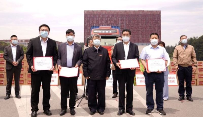 此次抗疫物资捐赠,得到了贵州太阳胜果生物科技有限公司、贵州省织金县农耀农业开发有限公司、贵州南方乳业有限公司、贵州奇昂生物科技有限公司的大力支持。捐赠仪式上,校长宋宝安院士向捐赠企业家代表颁发捐赠证书,向他们表达感谢。
