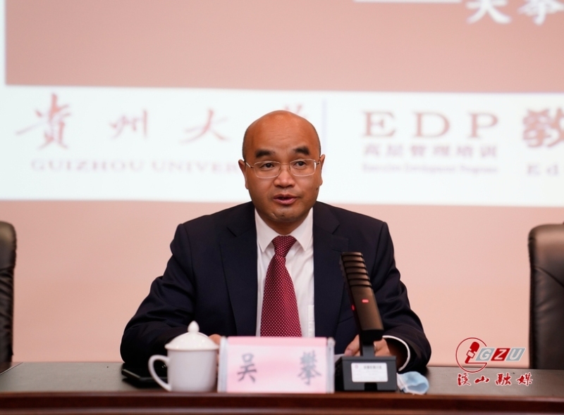 贵大新闻网讯(文字/李婧 摄影/陈思鱼) 5月10日,由中共贵州省委组织部主办,我校承办的全省农村优秀年轻党员乡村振兴专题示范培训班在我校开班。副校长吴攀,省委组织部党员教育中心教育处副处长任青出席开班式。