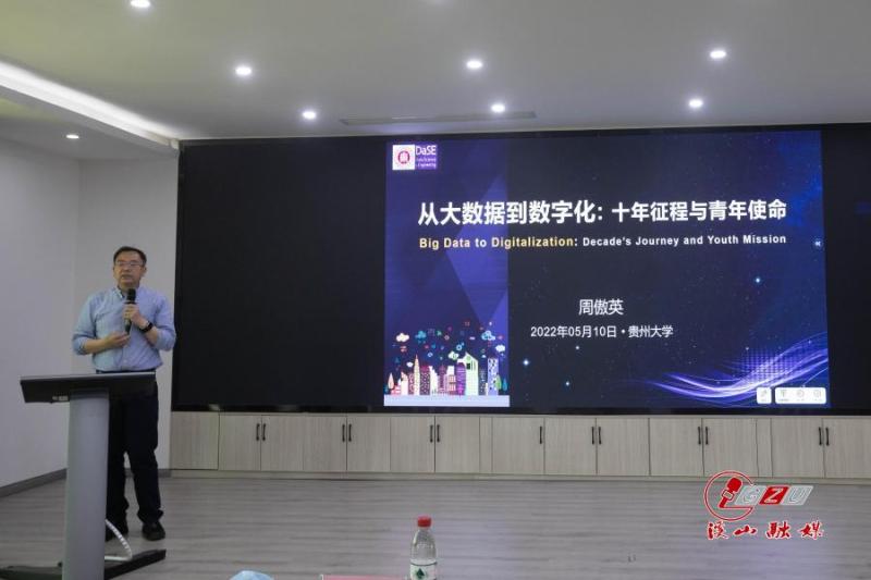 贵大新闻网讯 5月10日,副校长周傲英教授以《从大数据到数字化:十年征程与青年使命》为题,在东校区博学楼13楼会议室为计算机科学与技术学院师生讲授了一堂生动的思政课。