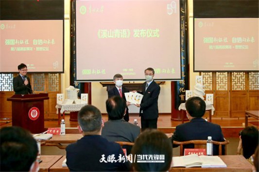 5月9日,在以“强国新征程·自信向未来”为主题的贵州大学第六届“高校青年·思想论坛”开幕式上,《溪山青语——贵州大学高校青年·思想论坛论文选》一书正式发布。中国工程院院士、贵州大学校长宋宝安代表论坛组委会及该书编委会,向贵州大学中国文化书院及论坛代表赠送图书。