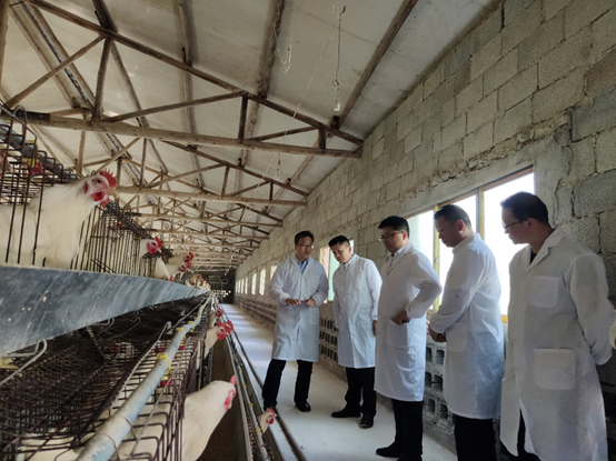 贵大新闻网讯 (文字/王忠 摄影/张福平) 5月10日,副校长陈祥盛教授到动物科学学院科研鸡场调研,动物科学学院院长陈超、副院长欧德渊、生态家禽团队骨干成员陪同调研,贵阳市花溪农业发展投资有限公司副书记彭羽参与此次调研。