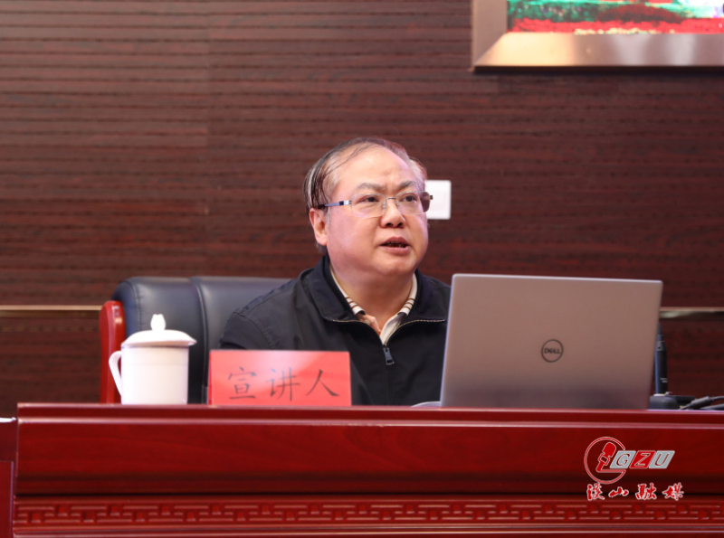 吴大华紧扣学习宣传贯彻省第十三次党代会精神主题,结合贵州和贵州大学工作实际,对省第十三次党代会精神进行了全面宣讲和深入解读。他指出,在新时代西部大开发上闯新路,改革开放是关键一招,创新是第一动力,人才是第一资源。作为贵州人才的“蓄水池”,贵州大学在吸引和培养人才方面具有领头雁的重要作用。他提出,贵州大学要认真学习领会省第十三次党代会精神,更加紧密地团结在以习近平同志为核心的党中央周围,高举伟大旗帜、牢记领袖嘱托,用奋斗书写精彩答卷,用实干开创美好未来,奋力谱写多彩贵州现代化建设新篇章,以优异成绩迎接党的二十大胜利召开!