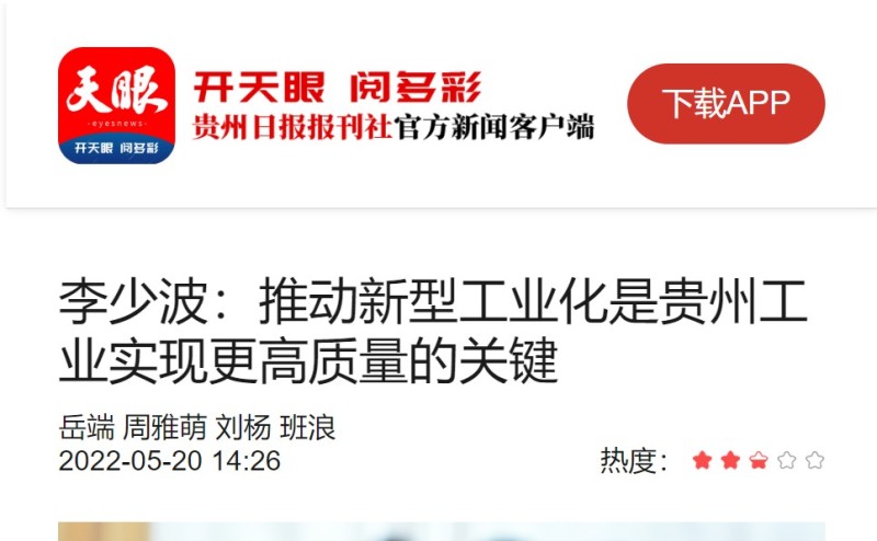“‘十四五’时期,贵州将把加速推动新型工业化作为经济高质量发展的首要任务,奋力推进工业大突破,为新型工业化发展提供了历史机遇。”