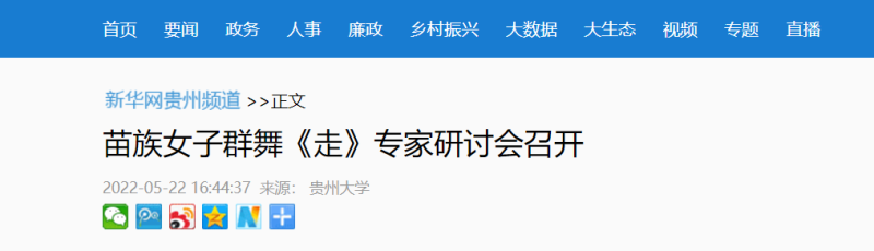 5月18日,国家艺术基金2022年度青年艺术创作人才资助(舞蹈舞剧编导)入选项目,苗族女子群舞《走》在贵州大学音乐学院舞蹈系开展专家研讨会。