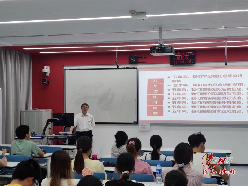 贵大新闻网讯(通讯员 丁龙)7月1日上午,校长宋宝安院士在西校区明俊楼214教室为园艺201、202,草业2001班的同学讲授《形势与政策》课。