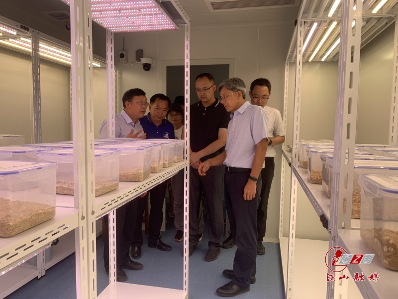 朱恩林一行首先听取了关于天敌扩繁中心建设项目进展情况的汇报,随后实地考察了我校天敌扩繁中心,就天敌昆虫扩繁区、低温冷藏区、包装和产品检验区等区域进行现场检查,详细了解了中心目前的天敌产品、繁殖规模、应用面积、防控效果等情况。朱恩林对中心建设工作表示充分地肯定,并要求中心一定要保质、保量、按期完成建设任务,尽快在农业绿色安全生产等方面发挥作用。