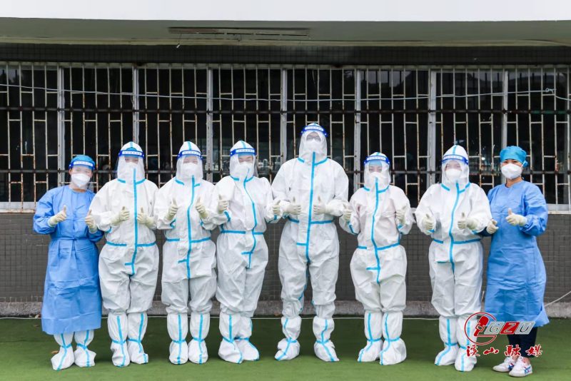 从9月2日早上来到贵大开始工作,今天是赵钿在贵大的第三天。刚刚结束采集工作的她,脱下防护服后,赶忙从物资箱里拿出一件手术衣套上。“我们来的那天贵阳还没有降温,大家都是穿着短袖来的,也没有带件外套,这两天突然降温后,我们就拿手术衣或者贵大后勤人员给我们提供的军训迷彩服套在身上御寒。”每天高强度的核酸采集工作不允许赵钿和队员们生病,“昨天下午工作的时候风很大,等晚上回到宿舍后,我们每个人都吃了感冒药,预防自己生病。我们的任务未完成,绝对不能倒下!”赵钿说。