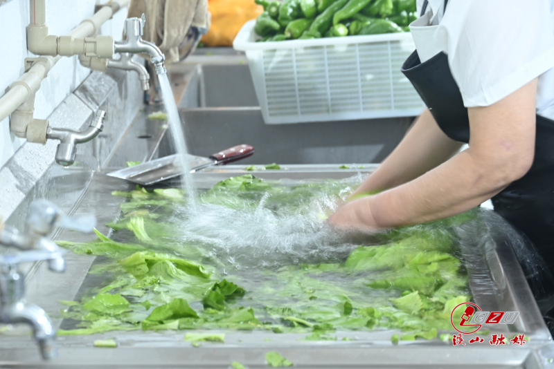 当问及近日工作的变化和感受时,食堂洗菜的阿姨答道:“最近几天肯定大家都要更辛苦一些,但只要能让同学们、老师们还有前来支援的医务工作人员们吃上新鲜可口的饭菜,我们再辛苦也都值了。”贵大食堂的全体工作人员们齐心协力,不辞辛苦,为贵大人的食品安全、舒心就餐保驾护航。