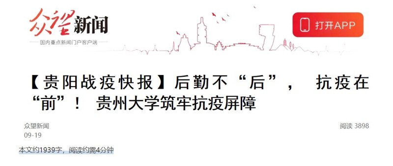 新冠疫情疫情突如其来,保障5万多名在校师生生命安全和正常生活,对于贵州大学来说,是一场重大的考验。抗击疫情,贵大必胜!师生闻令而动,奔赴一线。教师、辅导员、后勤工作人员和学生齐心协力,筑牢贵州大学疫情防控的后勤屏障。