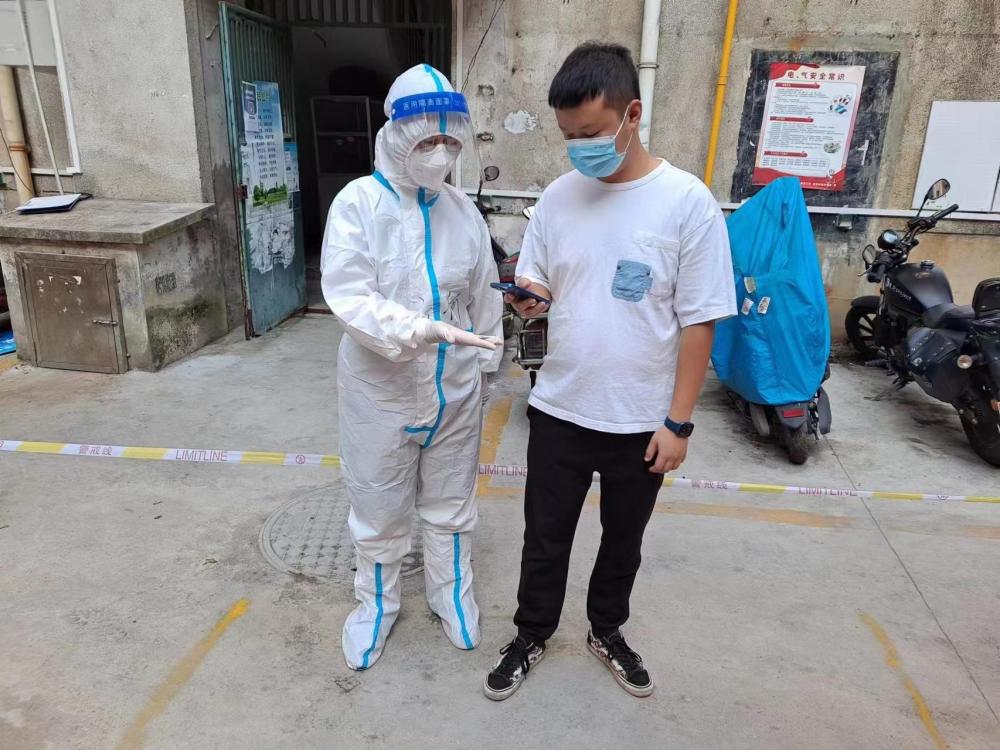 凌晨五点,贵州大学资产管理处的何文倩就已经开始穿好防护服,站在核酸检测扫码点,等待居民们下楼做核酸了,“早点做好准备,才能保证现场的居民们能够有序快速地做完核酸。”