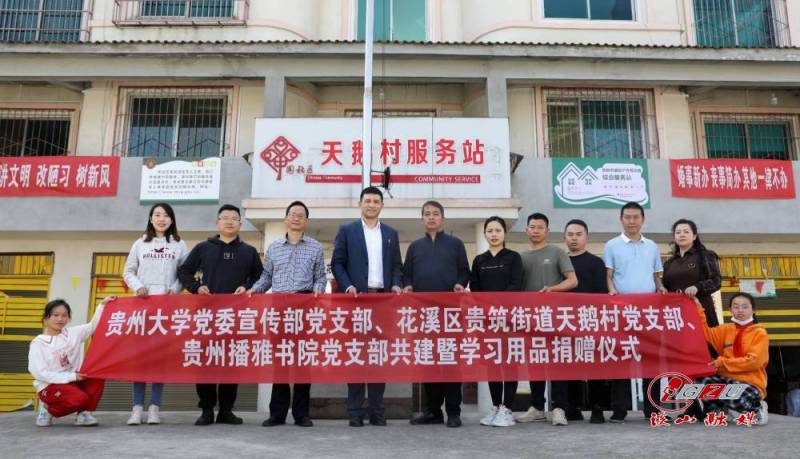 贵州大学党委宣传部党支部、花溪区贵筑街道天鹅村党支部、播雅书院党支部共建暨学习用品捐赠仪式