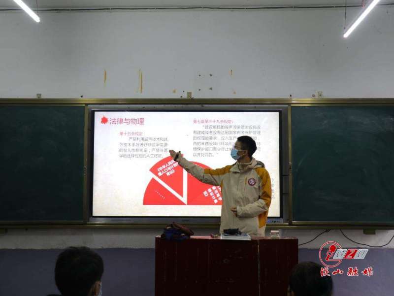 在2114班的物理课上,研支团成员王合龙根据“宪法中的物理”这一主题,列举了宪法中与物理知识相关的条例,并结合生活实际案例引导同学们明白宪法与生活息息相关,呼吁每位同学要充分地知法、懂法、守法。