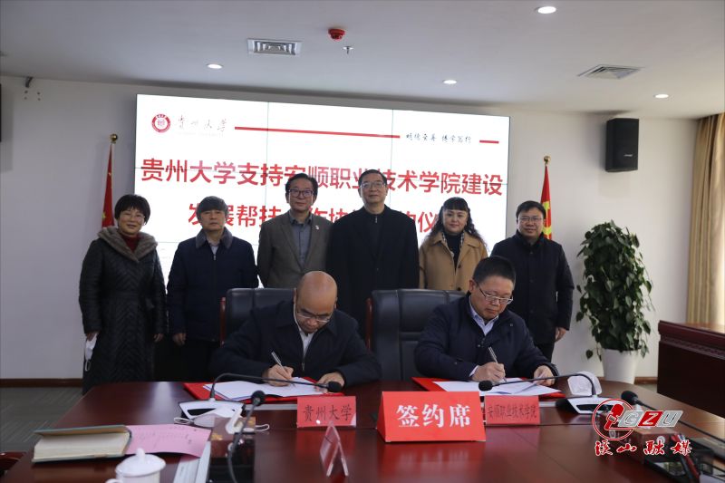 贵大新闻网讯 (文字/康瑞 摄影/雷昊 )12月16日,贵州大学—安顺职业技术学院交流合作座谈会在西校区贤正楼1号楼311会议室举行。我校党委书记李建军、校长宋宝安院士、副校长吴攀,安顺职业技术学院党委书记许志、院长李昕昌出席会议,我校及安顺职业技术学院相关部门负责人参加会议。校党委副书记令狐彩桃主持签约仪式。