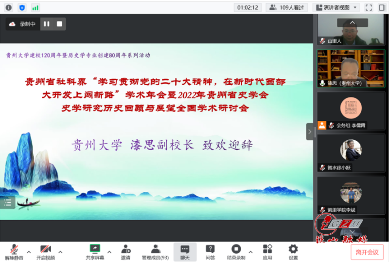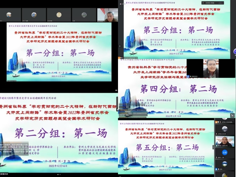 贵大新闻网讯(历史与民族文化学院)12月16日,由贵州大学与贵州省社会科学界联合会、贵州省史学会联合举办,我校历史与民族文化学院等单位承办的贵州省社科界“学习贯彻党的二十大精神,在新时代西部大开发上闯新路”学术年会暨2022年贵州省史学会史学研究历史回顾与展望全国学术研讨会以线上形式召开。