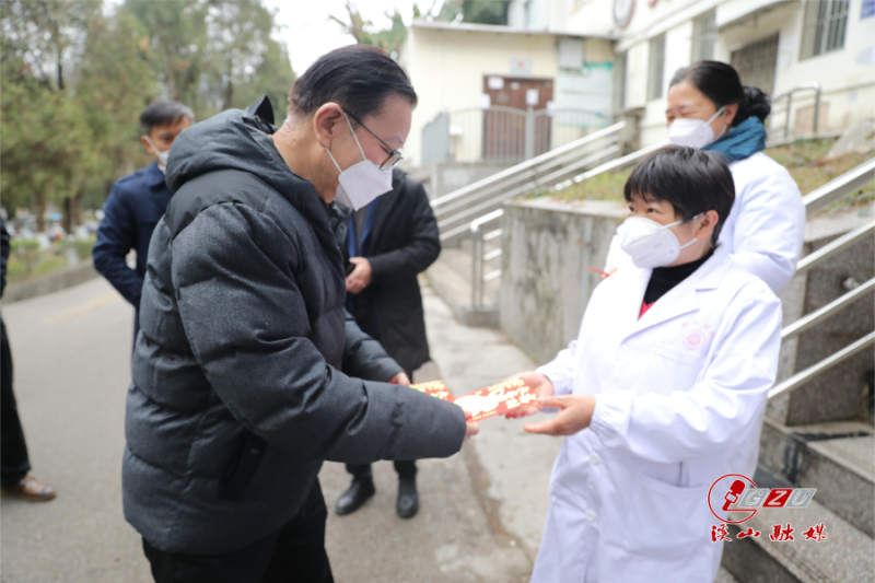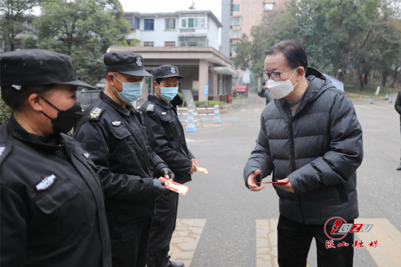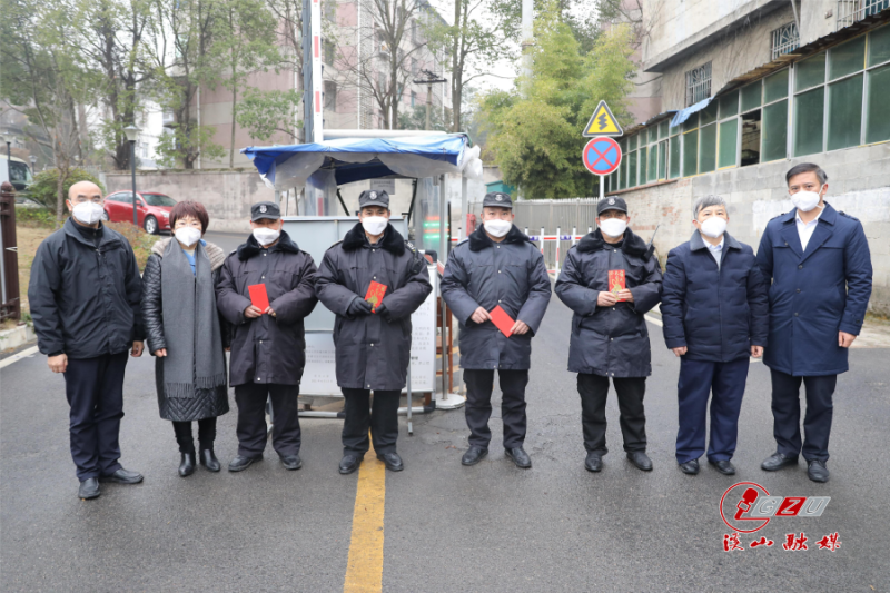 在东校区,李建军、令狐彩桃、张大林、吴攀一行看望了医务工作者、派出所民警及保卫、物业人员。李建军感谢校医院的医务工作者在过去一年中无私奉献,为全体师生的生命安全与身体健康保驾护航;感谢松山派出所的民警在疫情防控期间,给予学校大力支持,守护平安校园;感谢保卫处、物业的工作人员为校园安宁和环境卫生付出的辛勤劳动。