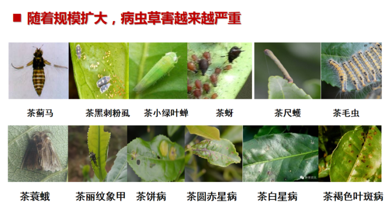 贵州茶叶种植面积位居全国前茅,随着茶园种植面积不断增大,受种植结构调整和气候的影响,近年来茶园病虫草害呈加重发生态势。茶树作物重大病虫害防治生物药剂缺乏、病虫危害加剧及“干净茶”品质安全等成为主要技术瓶颈。