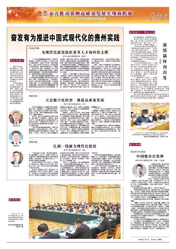 “人才的发展需要教育的培养,而新时代的教育,必须要为人民服务、为社会主义现代化建设服务。”全国人大代表、中国工程院院士、贵州大学校长宋宝安说,作为教书育人的前沿阵地,高校首先要抓住“立德树人”根本任务不放松,砥砺奋进,进一步强化教育科技人才基础性战略性支撑,开辟发展新领域新赛道,不断塑造发展新动能新优势,更好服务推动中国式现代化建设。
