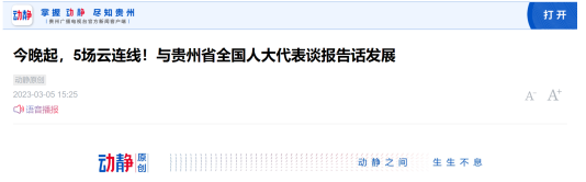 据了解,本次云连线集中采访活动共有5场,将紧扣“奋力推动高质量发展实现新跨越”“以高水平开放促高质量发展”“加快建设现代化产业体系”“加快建设现代山地特色高效农业强省”以及“持续保障和改善民生”5个主题,邀请贵州省全国人大代表围绕习近平总书记两会期间重要讲话精神,以及审议政府工作报告等情况,结合所在行业领域和自身工作介绍相关情况并回答记者提问。