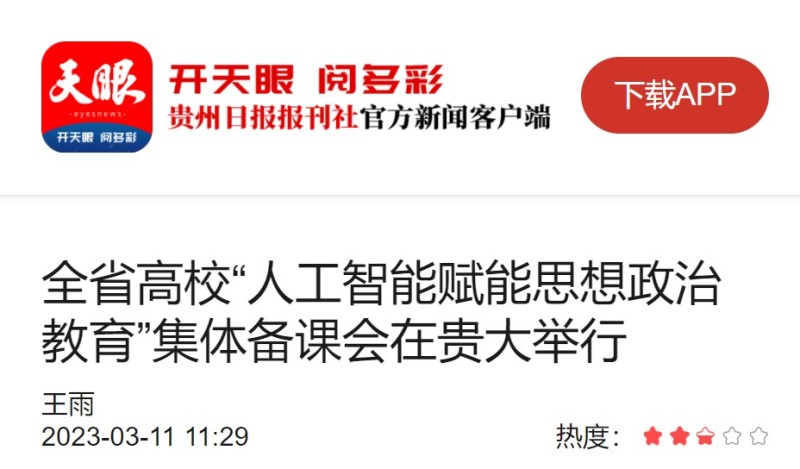 3月10日,由省委教育工委、省教育厅主办,贵州大学、贵州省高校网络思想政治工作中心承办的2023年全省高校“人工智能赋能思想政治教育”集体备课会在贵州大学举行。