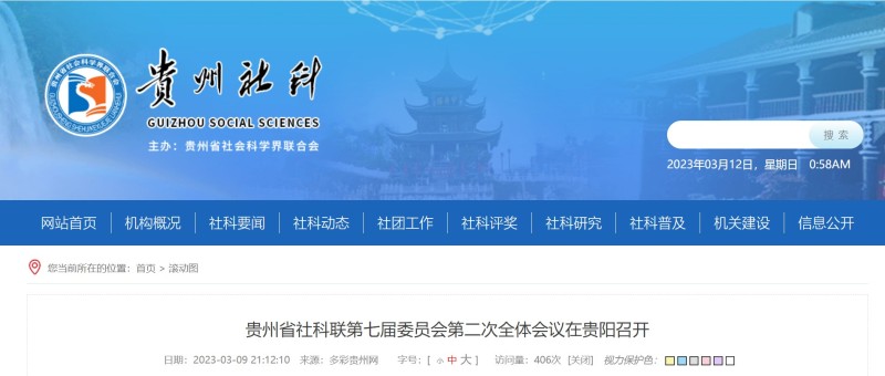 3月9日,贵州省社会科学界联合会第七届委员会第二次全体会议在贵阳召开。会议以习近平新时代中国特色社会主义思想为指导,深入贯彻落实党的二十大精神和省第十三次党代会精神,全面贯彻落实全国全省宣传部长会议精神,总结2022年工作,谋划2023年工作。