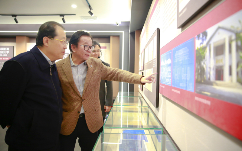 捐赠仪式结束后,龙超云和中央纪委国家监委驻国务院办公厅纪检监察组原组长、贵州省原副省长、贵州大学哲学系1976级校友辛维光等还到我校校史馆进行了参观。