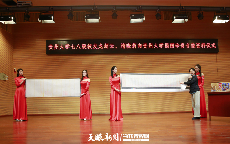李建军说,校友龙超云在任职学校党委书记期间,学校的各项工作都取得了长足进步,实施“人才强校”战略,通过迎评促建,突显教学中心地位,加快人才队伍建设,教育教学质量稳步提高,科研成果显著增加,服务贵州经济社会发展能力明显增强。离开贵州大学后,也一直关注学校发展,对学校的学科建设和人才培养提出很多好的意见建议。此次捐赠,体现了她对贵州大学的深情厚意,体现了对同学们人文素养提升的关怀和民族文化提升的期待。