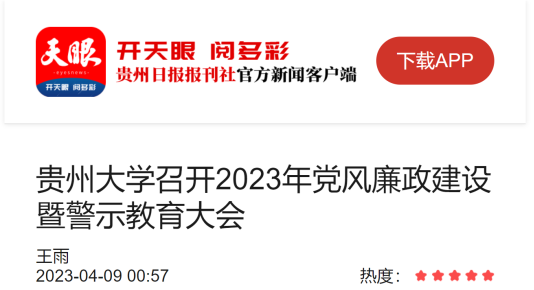 4月6日,贵州大学召开2023年党风廉政建设暨警示教育大会。学校领导李建军、宋宝安、骆长江、令狐彩桃、唐本文、周少奇、漆思、陈祥盛出席会议,学校办公室、校党委组织部、宣传部、统战部主要负责同志,全校副处级以上干部和校纪委、校党委巡察办全体干部,各基层纪委书记,机关党委下属党总支、党支部纪检委员参加会议。会议由学校党委常委、纪委书记、监察专员唐本文主持。