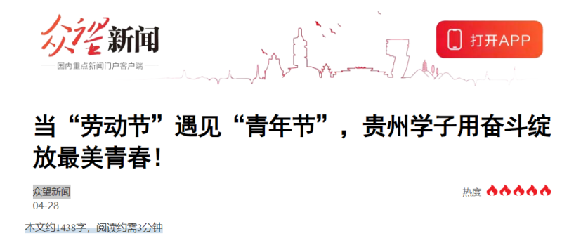 五月的开端,劳动节与青年节相遇,劳动精神与青春理想交织,在贵州上学的大学生们以火热激情、不懈奋斗,让青春展现出亮丽的风采!