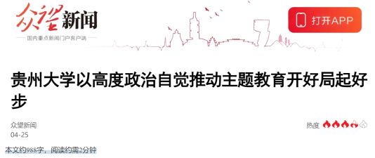 根据贵州省委部署,在省委第十七巡回指导组指导下,贵州大学党委紧密结合学校实际,迅速行动,推动学习贯彻习近平新时代中国特色社会主义思想主题教育开好局、起好步。