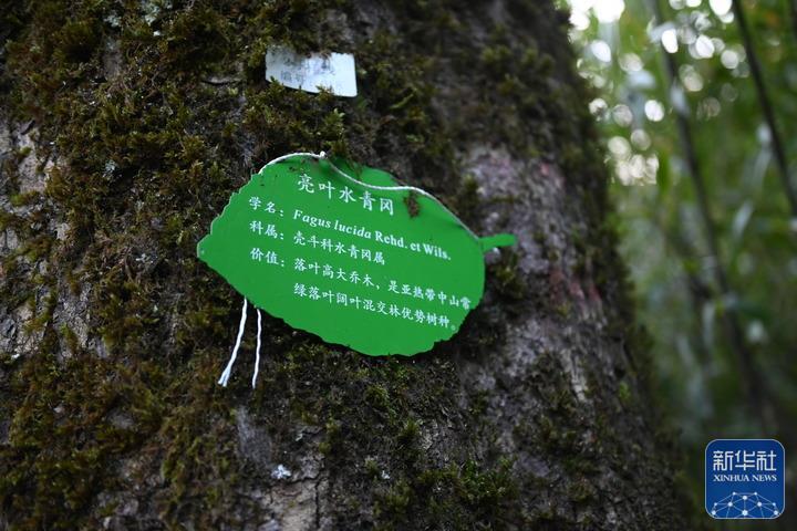 这是11月28日拍摄的亮叶水青冈的树干。新华社记者 周宣妮 摄