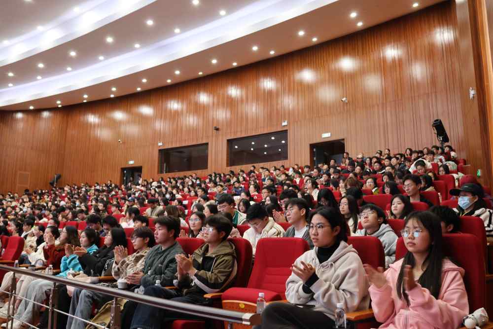 潘学军讲述了他与核桃结缘并带领农户通过核桃脱贫、用脚步丈量大地的故事。他说,知识改变命运,既改变了山区的面貌,也改变了我。知识是用来奉献的,青春是用来奋斗的,他鼓励同学们把学习同祖国的发展相结合,同中华民族伟大复兴相结合,号召大家“乡村天地广阔,山地农业大有可为”,去挖掘乡村的魅力、农业的潜力,收获青春奋斗的硕果。