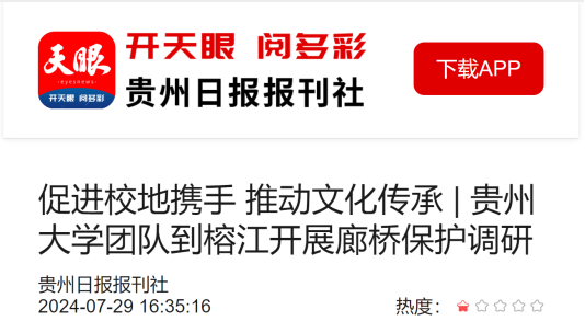 近日,贵州大学桥梁文化遗产保护与传承团队到访榕江县对境内廊桥进行调研考察,推动地方政府与高校合作开展廊桥保护调研,深化廊桥文化挖掘与保护。