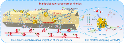鉴于此,研究团队设计了一种串联加速热电子转移策略,来调谐载流子动力学与表面反应动力学的匹配度。通过在大π共轭中空管状g-C3N4框架上嵌入共轭缺电子结构(CEDS),来诱导Pt纳米颗粒(Pt NPs)定向锚定。实验观察表明,CEDS和Pt NPs协同加速了光生电子的快速分离和转移,从而延长了光生空穴的有效寿命。机理研究证实了CEDS作为水氧化的活性位点加快了表面反应动力学。因此,实现了可见光下优异的光催化全解水性能,最高的H2和O2产率分别为1328.65和631.33 mmol g-1 h -1,在400 nm处的AQY为4.2%。本研究为合理设计可见光响应的有机光催化剂以平衡载流子动力学和表面反应动力学提供了一条有效的途径。