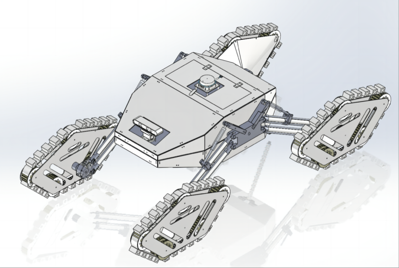 使用激光雷达进行SLAM建图可获得机器人在环境下的二维地图以及使用深度相机来实现3D地图的建构并且通过深度相机客户可得到机器人的视觉信息。该深度相机上搭载了红外感应器,机器人在进入灾区后可实现红外传感以发现生命体征的有无。