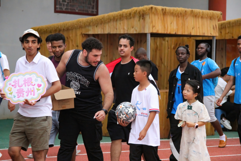 贵大留学生的“村超”之旅从一声亲切的问候开始,当地的小朋友热情地欢迎贵大留学生队伍的到来,队员们用流利的中文在抢答,“村超”成为了“地球村”的具象化。