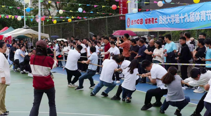 贵大新闻网讯(文字/杨胜兰 陈美美 摄影/黎远涛 刘圣锦 杜正曦)10月16日上午,贵州大学第十九届体育节教职工拔河比赛在东校区体育场举行。各代表队全力备战,上演了一幕幕热血沸腾的较量。