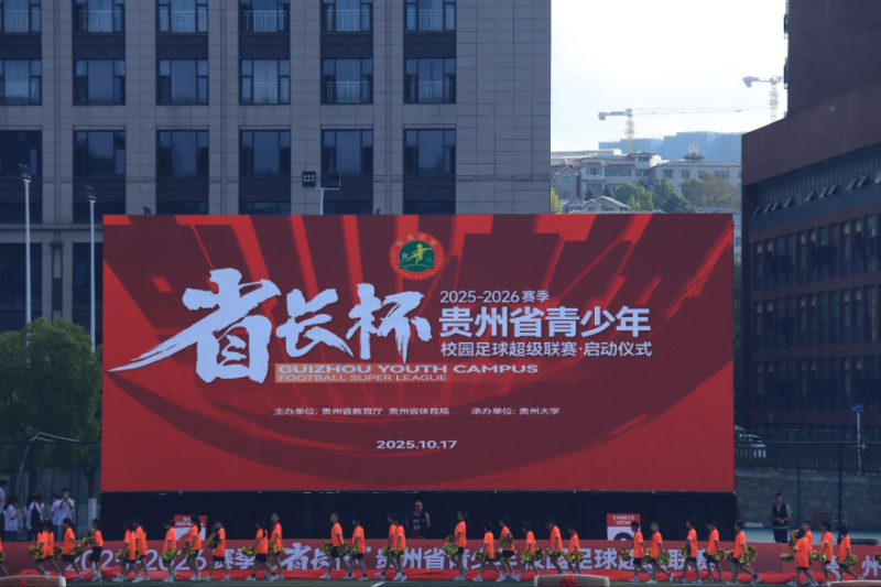 贵大新闻网讯(文字/学生记者 孙娜 摄影/学生记者 曹零益)10月17日的贵州大学西校区足球场,阳光与呐喊交织成青春的序曲。随着贵州大学国际折耳根队与贵州警察学院飞鹰足球队的球员踏上草坪,2025-2026赛季“省长杯”贵州省青少年校园足球超级联赛正式拉开帷幕。