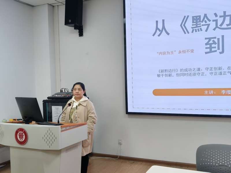 讲座内容生动,形式新颖,以“跨越三十五年的一场时空对话”“新时代黔行三部曲的水到渠成”“《新黔边行》后续效应持续中”“新闻行业可以了解再多一点点”等四个章节层层推进。李缨认为,在融媒体时代,一个优秀的新闻人须拥抱各种新事物和新思维,敏于创新。同时须守正,守正道正气,守文化之正,守传统之正,守职业之正。