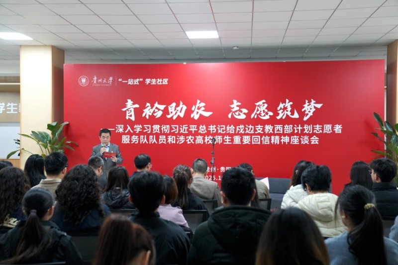 陈祥盛指出,学校始终把“扎根黔中大地、服务地方发展”作为办学初心,涉农学科更是学校服务“三农”、推进教育公平的核心力量,号召全校师生学习贯彻习近平总书记给戍边支教西部计划志愿者服务队队员和涉农高校师生重要回信精神,凝聚共识。同学们要以初心锚定方向,以实干练就本领,以担当传递力量,助力贵州乡村振兴与教育公平。
