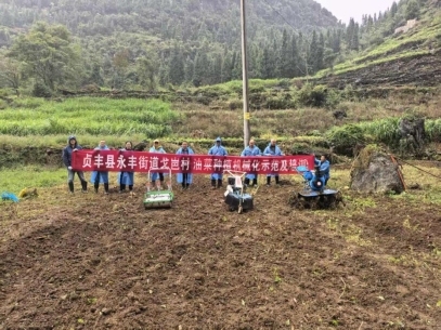 在永丰街道戈岜村,几台油菜种植农机装备在田间有序作业,旋耕、开沟、播种一气呵成。来自贵州大学专家和贵州山地智慧农业科技有限公司技术人员耐心细致地为农户讲解机械的操作规程、维护保养知识以及油菜机械化种植的技术要点和优势。同时,邀请农户亲自上手操作,针对大家提出的问题进行手把手指导,确保农户能够听得懂、学得会、用得好。